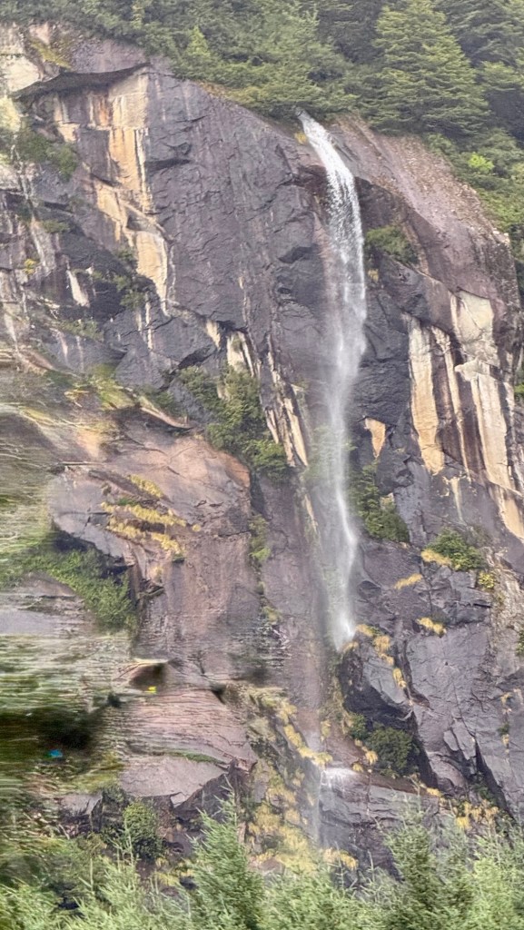 Everywhere you look, something is falling—water spilling from impossible heights, cascading down cliffs as if the mountains themselves are unraveling. Around each blind curve, another scene steals your breath: trees clinging to landslide scars, their fallen kin scattered below like bones in the valley.